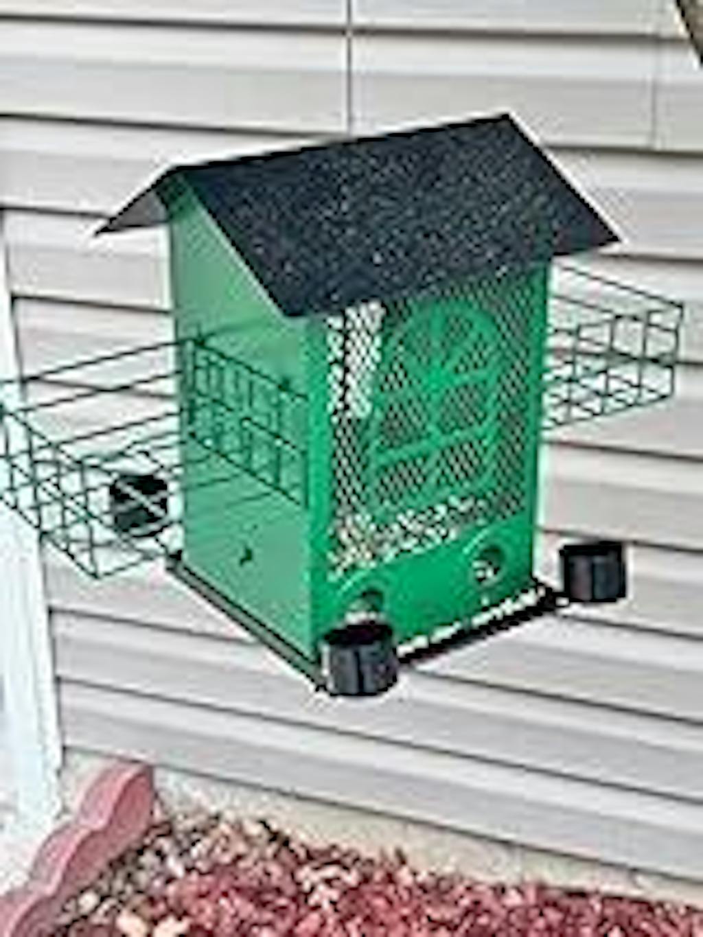 This bird feeder is fantastic! It’s built with high-quality metal, making it sturdy and durable enough to withstand outdoor weather. The large seed capacity means fewer refills, which is super convenient. I also love the double suet cage feature, as it attracts a variety of birds to my yard.