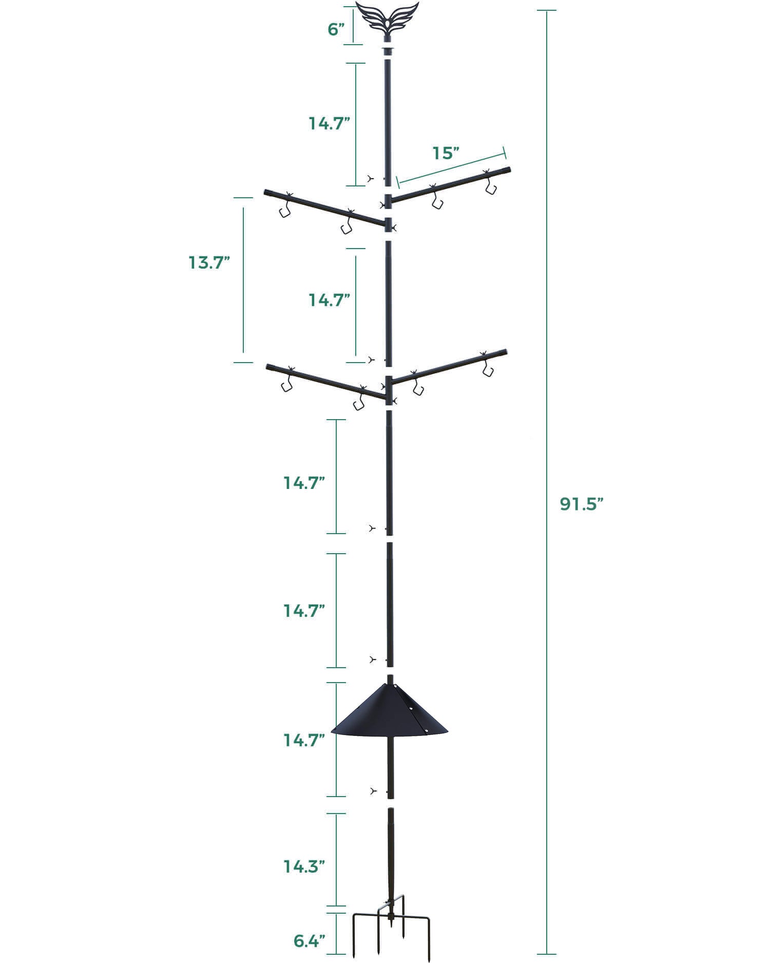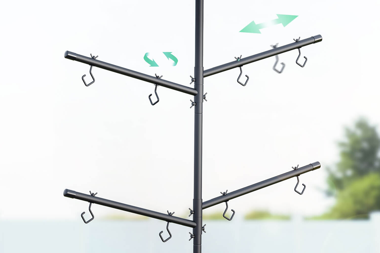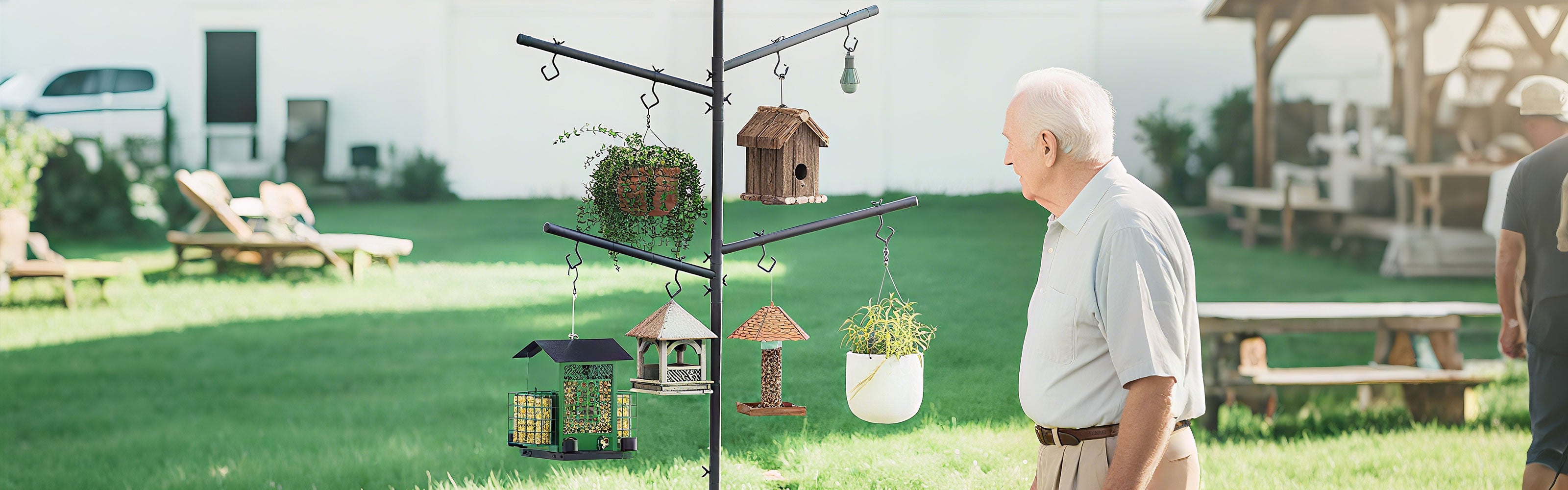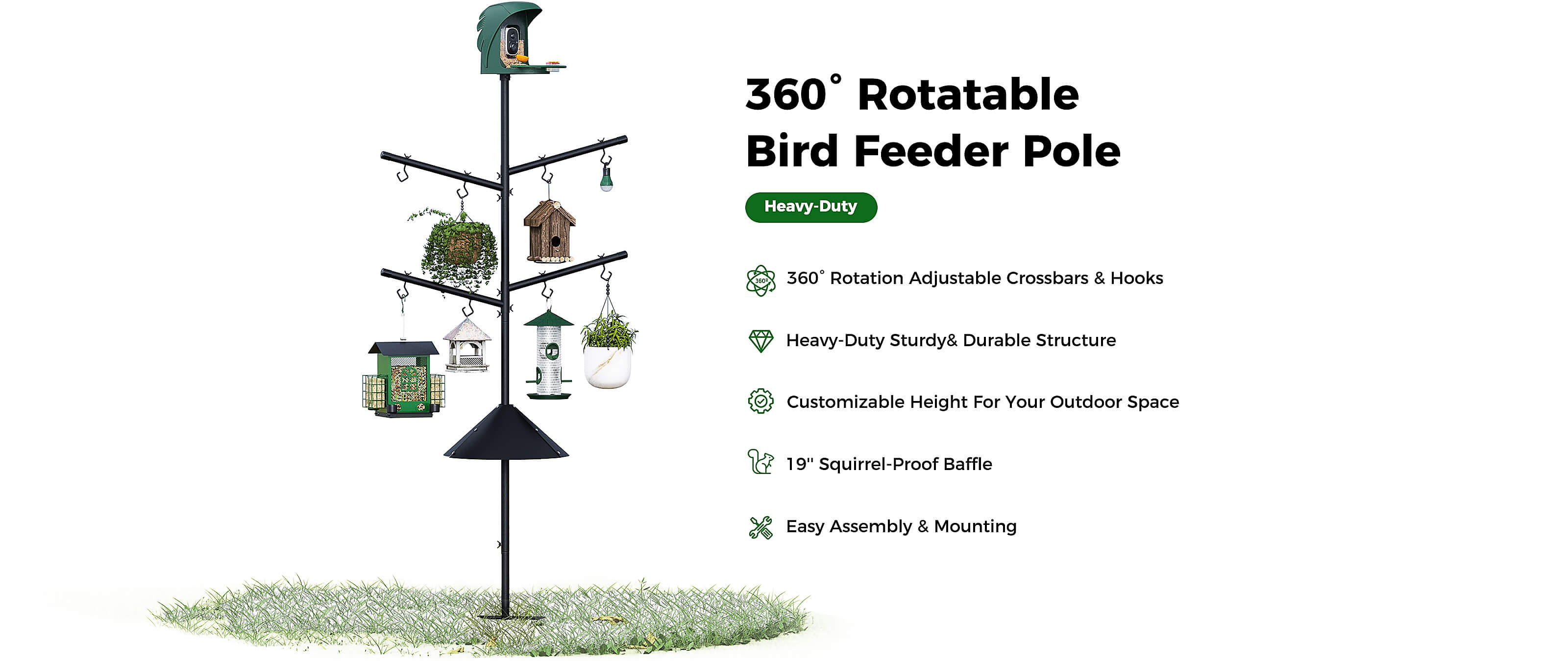 with 360° rotation and customizable spacing, allowing you to organize your bird feeders, hanging plants, and outdoor decor exactly the way you want.